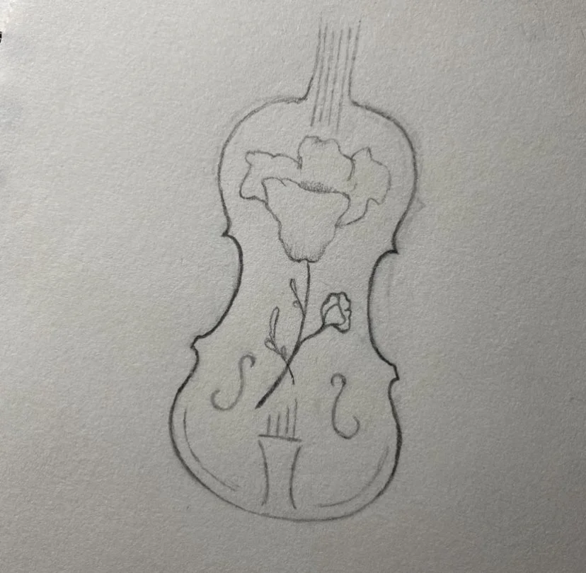 Growing up, my grandfather meant everything to me. He taught me how to play the violin. After he passed away, I wanted to create a design that honors the time that we shared together through music and that incorporates his birth month flower. It serves as a constant reminder of how much I love and miss him.